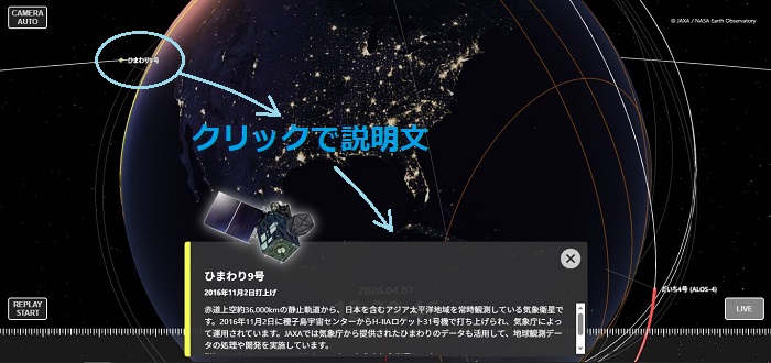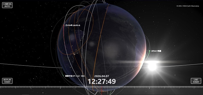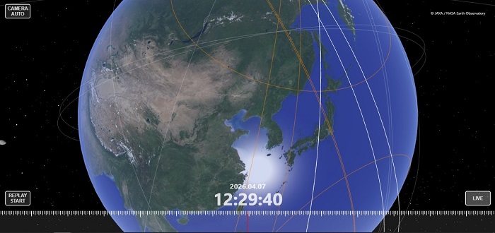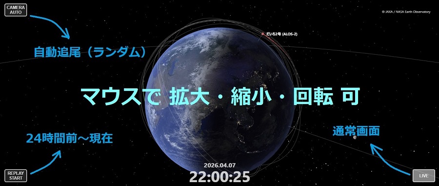⇧ これは JAXA 公式サイト〖サテナビ〗内の “3D 人工衛星追跡ツール” で、JAXA 運営の人工衛星のみを対象としたものです。