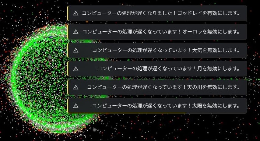 アクセスした瞬間⦅抹茶トリュフ⦆の CG でも出現したかと思いましたが、“抹茶の粉” に見えたそれは、なんと地球を取り巻く無数の人工衛星でした。