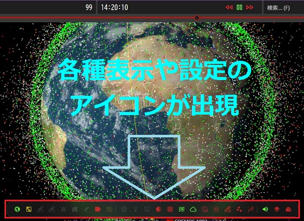 ⇧ 例えば、「星座」や「国境線」を表示させる、「雲」を消す、「夜」の部分を明るくする、等々がこのアイコンから操作できます。