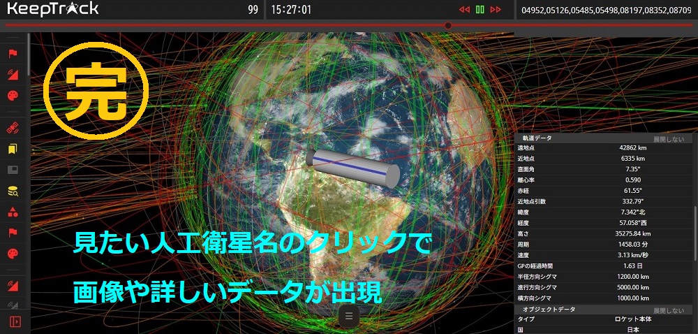 …とまぁ、とりあえず簡単な一例だけは載せておきましたが、“海外サイト” な上、膨大な人工衛星数&ズラリと並んだアイコンで、この場にて完璧な説明などできようはずもありません。