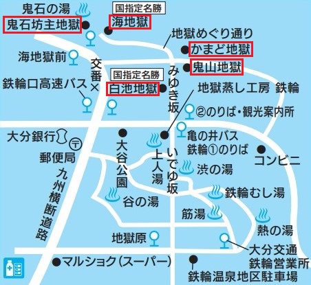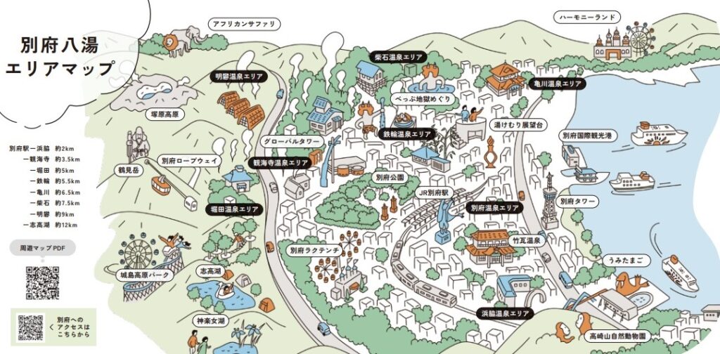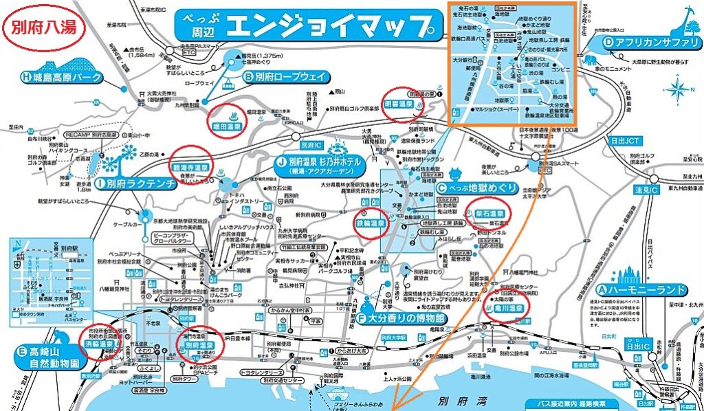 別府温泉エリアマップ| 主要観光スポットの位置関係