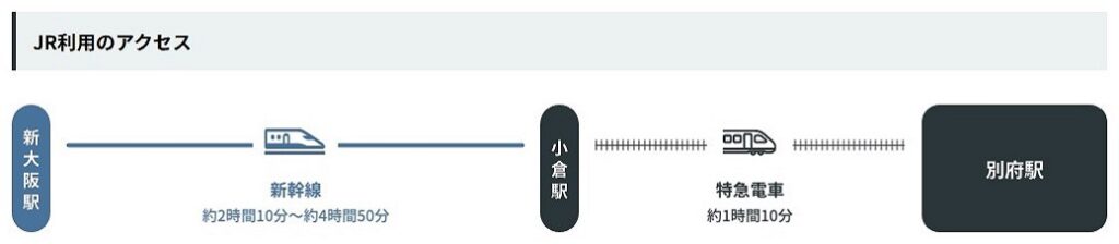 [JR: 新大阪駅 ➔ 小倉駅 ➔ 別府駅]