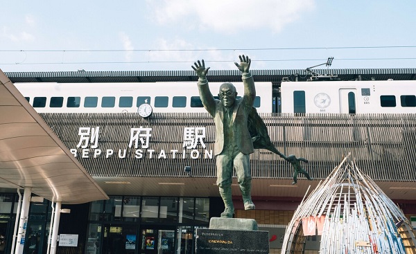 新幹線や特急列車で JR 別府駅まで行く方法が一般的で、博多駅からは特急「ソニック」で約2時間。
