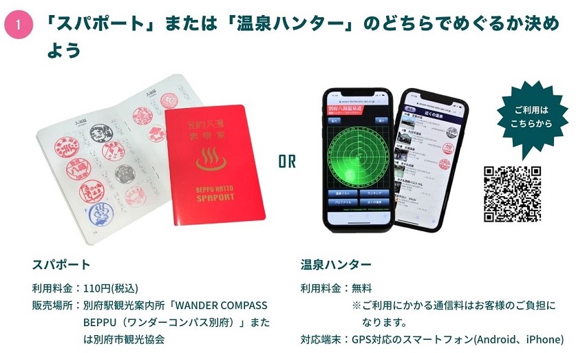 温泉道パスポートは観光案内所や参加施設で購入可能です。