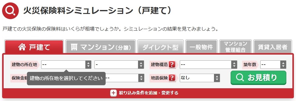 これを使えば複数の保険会社からご希望にそった内容の見積もりが届き、その中からご自身に最も適した「火災保険」をチョイスすることが可能です。
