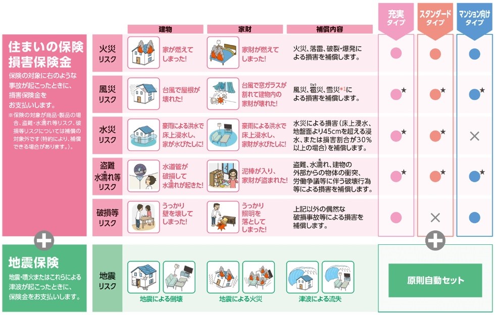 賃貸の場合は家財のみを評価し、建物は大家が保険に加入しているケースが多いです。