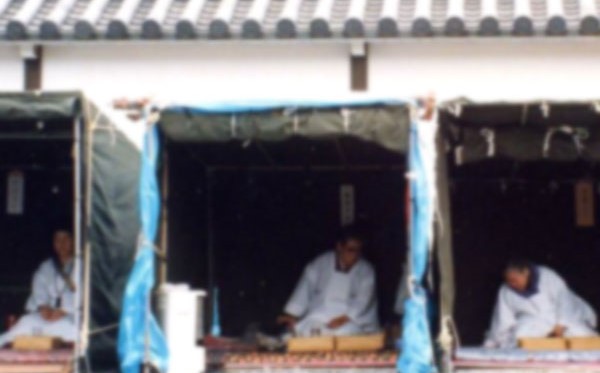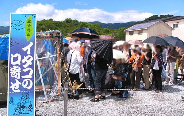 大祭では多くの参拝者が順番待ちをし、イタコがひとりひとりに口寄せを行います。(上画像参照)