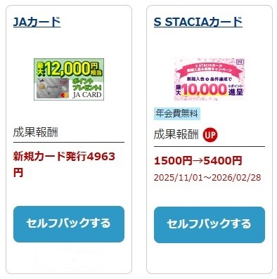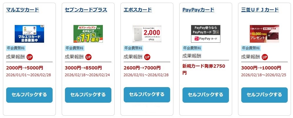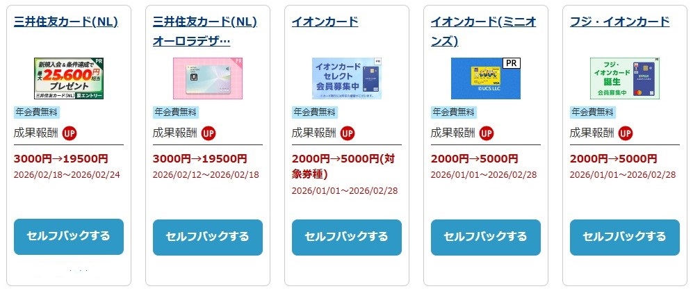 【参考画像 / A8.net セルフバック対象クレジットカード / 2026,2,18 追記】